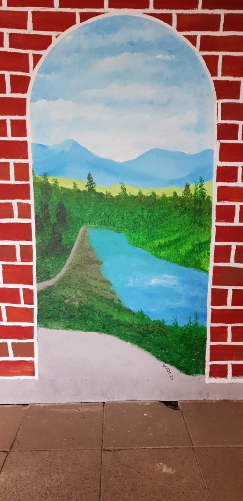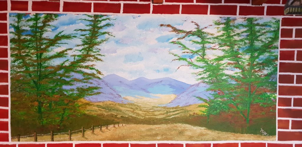 Hier wurde der Corona-Lockdown sinnvoll genutzt. Täglich (vielleicht nicht am Wochenende 🙂 verbrachte Rudi mehrere Stunden auf dem Platz und plante bis ins kleinste Detail, mischte die Farben und gestaltete diese naturgetreue Landschaft.