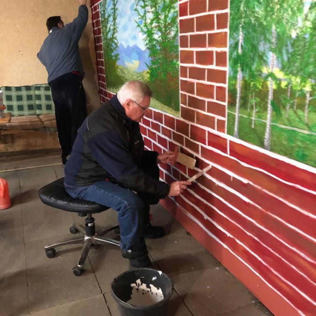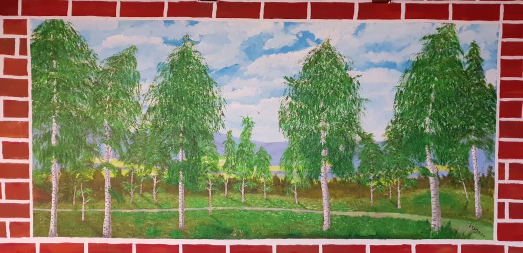 In der Zeit vom 31.10.20 bis 11.12.20 hat „unser Rudi“ ca. 54 Stunden in der Remise an diesem wunderschönen Wandgemälde gearbeitet. Man glaubt wirklich, dass man aus dem Fenster schaut und die Natur in Echt sieht.